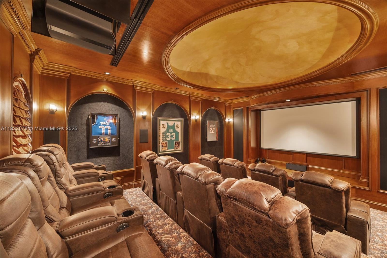 Set on over an acre in lush Pinecrest, this grand two-story estate offers 7 bedrooms and 6.5 bathrooms, including a detached guest house with shared cabana bath. A dramatic foyer introduces formal living and dining rooms divided by a double-facing fireplace. The chef’s kitchen is equipped with Monogram appliances, double ovens, and a central dining space, flowing into the family room and outdoor terraces. With a 13-seat theater, billiard room, and summer kitchen with built-in grill, the home is designed for effortless, year-round entertaining. Additional highlights include a library with custom built-ins, elevator, whole-house generator, and detached 3-car garage. Outside, enjoy a resort-style saltwater pool with grotto and spa, featuring a flexible chlorination system.